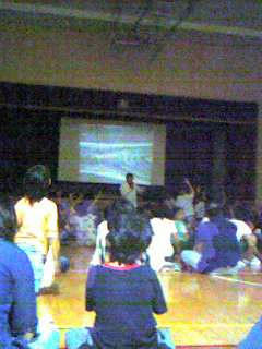 暗い体育館の中で、大画面に映し出される「さなぎ」や「ほたる」の、生々しい姿に、やや引き気味の2人( ̄▽ ̄;;)…私にベッタリだよ(笑)。